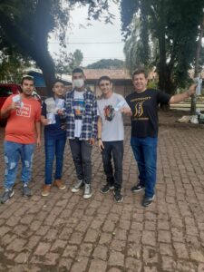 Concentração da equipe do distrito Agronomia na frente da igreja e depois ação no bairro e nas avenidas