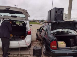 Evangelização com folhetos e culto ao ar livre com caixas de som na praça CECORES Restinga, com supervisão do irmão Marcelo Castro